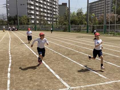 今日は50m走のタイムをとりました。