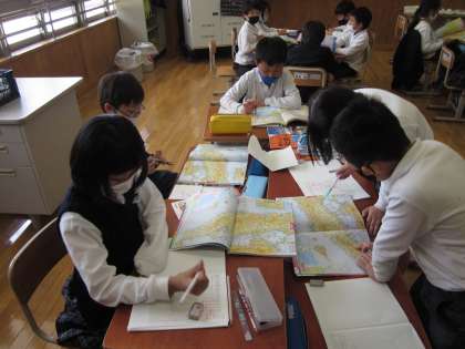 地図帳を手にした子どもたちの夢が膨らみます。