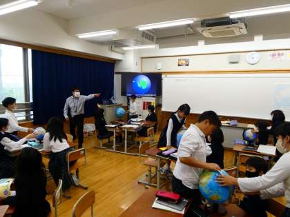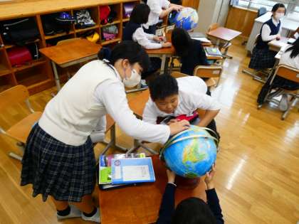 地球儀を使って世界の国の国土について学習をしていました。