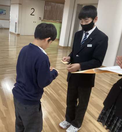 図書委員会の取組で昨年度、図書室でたくさん本をかりた生徒に「ゴールドカード」がわたされました。「ゴールドカード」をもっている生徒は1学期の間、1回の利用でで4冊まで本をかりることができます。とてもすてきな取組です。これからもたくさん本をよんでほしいです。