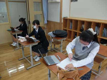 放課後、教室で修学旅行実行委員が修学旅行にむけてポスターを作っていました。みんなのためにがんばる姿とても素敵です。「SUN 9」