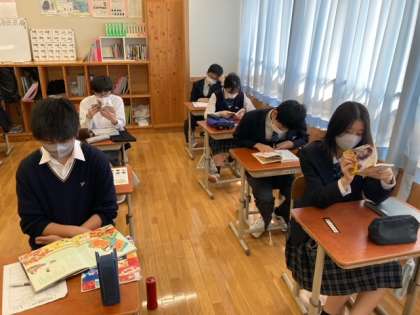 9年生も朝読書にしっかりと取り組んでいます。黙々と読書をする姿はとても素敵です。朝読書の時間は10分間。たかが10分。されど10分。毎日の積み重ねがきっと大きな力につながります。「継続は力なり」ですね。