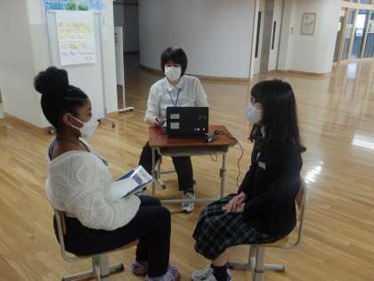 今日の英語はALTのイタナ先生を相手にスピーキングテスト。英語でのコミュニケーションを楽しみながらテストを受けていました。すらすら英語が出てくる9年生ステキです。
