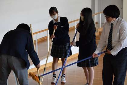 普段自分たちが使用している場所は、もちろんのこと教室前などすみずみまで、ほうきや雑巾を使って掃除をします。