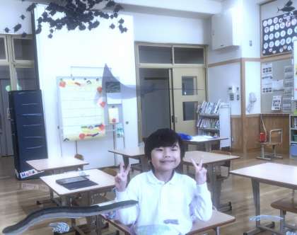 雨の日の休み時間など、GIGAタブレットにはいっているアプリをつかって遊んでいます。かわいい写真がとれました。