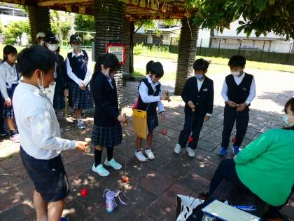 各ポイントでは先生方から色々なお題が出されチームで協力してクリアを目指していました。