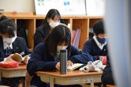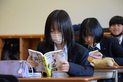 登校後すぐに荷物を片付け、それぞれが自分のお気に入りの一冊を読み進めています。