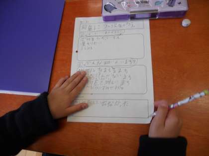 友だちの意見を書いたり、今後したいことなどをワークシートに書いています。