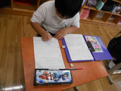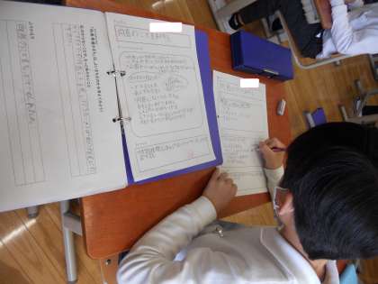 書いたワークシートは今年度初めて配布してもらった青のファイルに綴じています。