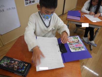 ファイルに綴じることで、今までの流れを振り返りながら今日の学習をしています。