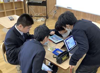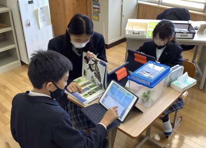 今日はアゲハチョウとモンシロチョウの卵を観察しました。連休前に採取した卵から幼虫が生まれていました。興味深く観察をし、観察記録をロイロノートにまとめています。