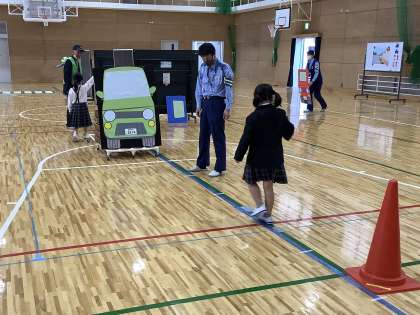 伏見警察署交通課の方と、伏見地域交通安全活動推進委員協議会の方に来ていただき、交通安全教室を行いました。