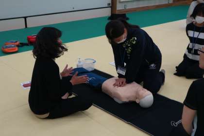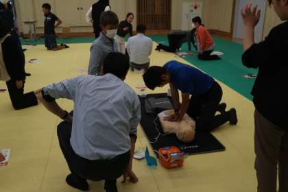 11日の放課後、京都市消防局より講師をお招きして、主に前期課程教員を対象に普通救急救命講習会を開きました。毎年行うのですが、心肺蘇生法やAEDの使い方など改めて確認することができました。どの教員も救急の場面を想定して真剣に講習に参加していました。