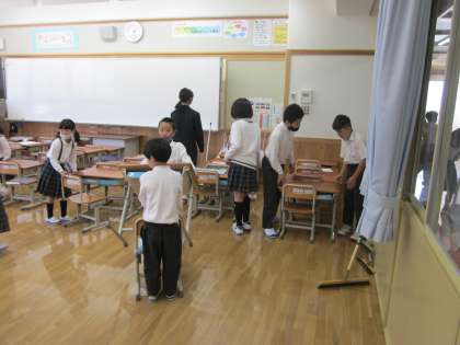 ピア清掃では6年生のお兄さん、お姉さんが教室などに来てくれます。