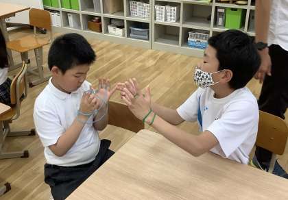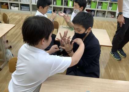 一人あやとり、二人あやとりに挑戦しています。