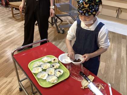 作ったおやつは「餃子の皮でチョコっとバナナタルト」です!