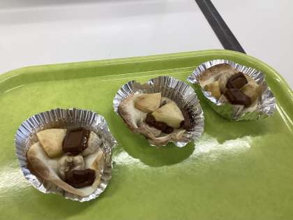 材料は餃子の皮、バナナ、りんご、板チョコです。