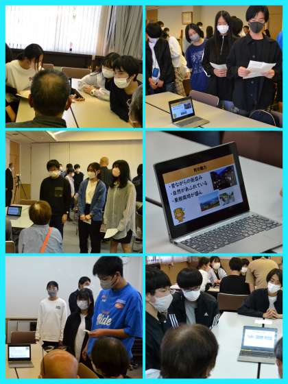 午後は、民泊するエリアごとの4グループに分かれることになります。それぞれのエリアに着いて、入村式の後、これまで学習してきたことを民家さんたちに聞いていただきました。それぞれのグループが考えた「地域活性化プラン」のプレゼンをしました。何かしら、それぞれのエリアに寄与できることがあれば嬉しいですね。