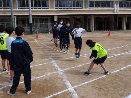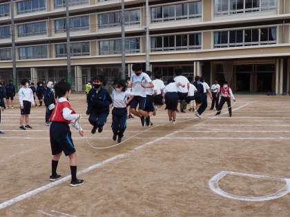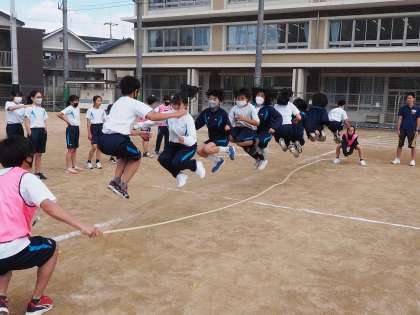 7年生の学年種目「みんなでジャンプ!」こと大縄跳びの練習の様子です。
