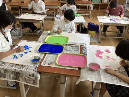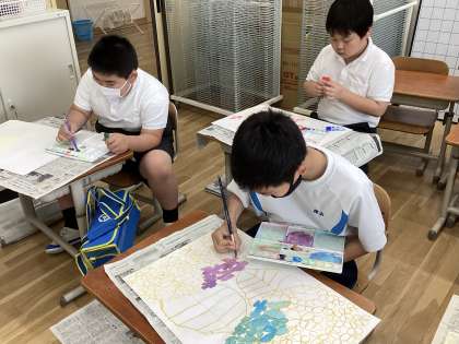 あじさいの花びらを一つひとつ丁寧にぬっていました。