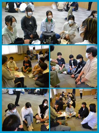 離村式及びお世話になった方に振り返りを聞いていただいている様子です。