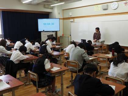 こちらのクラスでは、「ムカタン」と呼ばれる英単語の小テストに取り組んでいました。
