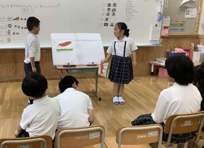 ペアの友だちと会話やジェスチャーのやりとりを楽しく学習できました。