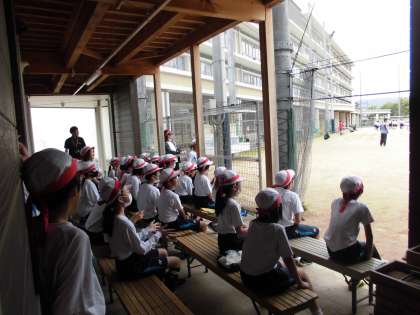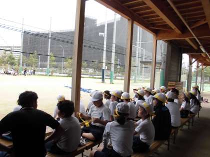 競技が終わり,水分補給をした後は,6,7年生の応援をしていました。