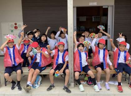 1〜9年生のたてわりグループ「ルビー」と「サファイア」の2チームにわかれました。