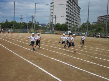 中には、頑張って走って赤白帽子が飛んでいく子もいました。