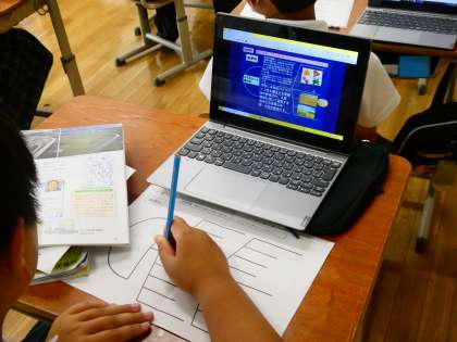 低い土地ではどのようなくらしのくふうをしているのか。について、「水害から生活を守るくふう」「水を生かした農作物」「水を生かしたくらし」の3の項目にわけて、GIGA端末を使ったり、ノートに書いたりしてまとめていました。
