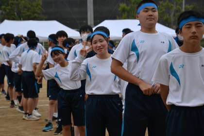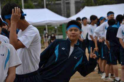 天候が心配されましたが、9年生の堂々としたアナウンス係の声で、今年度も始まった秀蓮フェスティバル体育の部!