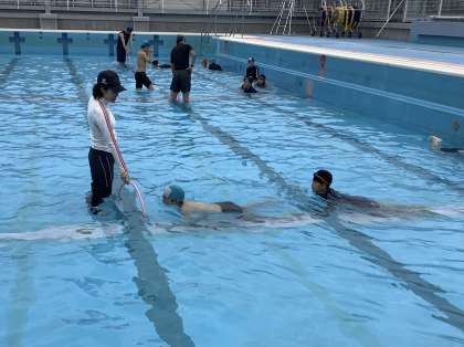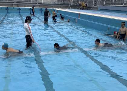 ワニさん泳ぎでは水に顔をつける練習もしました。