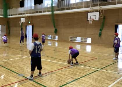 うまくパスできるとチームのみんなで喜びあっている姿が見られます。
