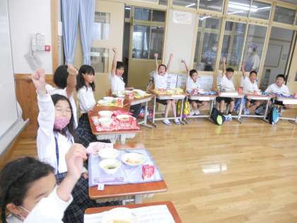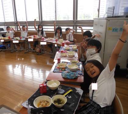 総括考査も終わり、水泳学習でスッキリした後は、おいしいおいしい給食です。