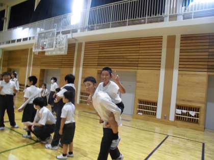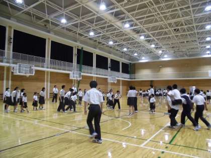 1年生と9年生と一緒に,だるまさんが転んだで楽しみました。