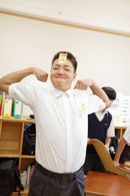 付箋で書いた『闘魂』と額につけながら、力強いポーズを見せてくれました!!