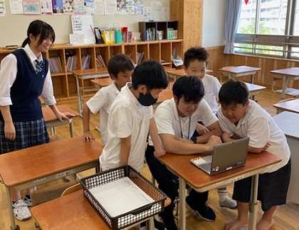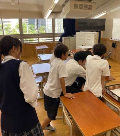 今年度から委員会活動は4年生も参加しています。元気にがんばる4年生をそっと,そして温かく笑顔で見守る9年生の委員長。とてもステキです。
