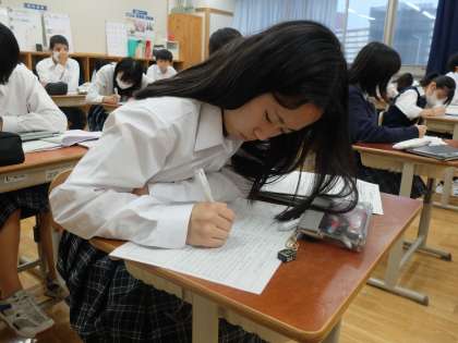 ワークシートには先生からのメッセージも書いてあります。それをうれしそうに見ながらふりかえりを書いていました。