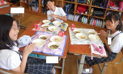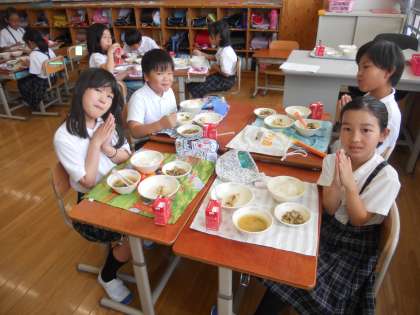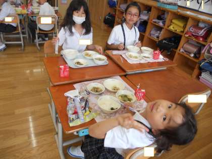 あとは、時間内に食べ終わることです。どうしても楽しくてお喋りに夢中になってしましますからね。給食献立を見ながら、円になって食べたり、グループになったり、1組さんも一緒に食べたりと色々考えていこうと思います。