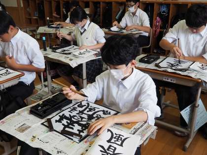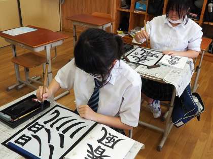 書写の授業では、久しぶりに毛筆をしました。