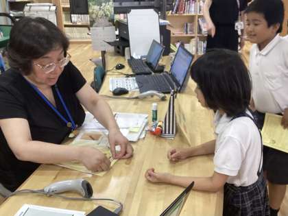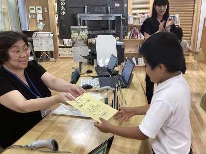 1学期、図書室でたくさん本をかりて読んだ人に「ゴールドカード」が授与されました。
