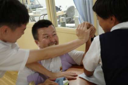「先生強すぎるので、2人vs1人でやりましょう!!」と主任の先生に勝負を挑む生徒がいました。