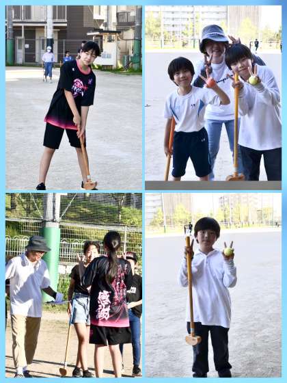 完全下校を終えた17時。明日から夏休みというワクワク感も大きいこの日に、学校運営協議会体力向上部会の企画で、地元体育振興会の方々とグランドゴルフを楽しむ時間を作っていただきました。
