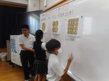 円の面積の計算にも慣れてきたので、単元の最初に出された課題「どのピザが大きいのかな?」にチャレンジしました。