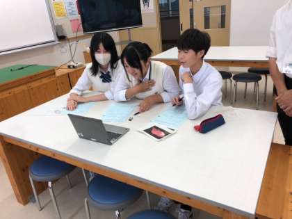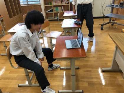 9年生英語では,オーストラリアの中学生とオンラインで交流しました。オーストラリアで日本語を学んでいる8年生との交流です。初めての海外とのズームでのやりとりに,苦労するところはあったと思いますが,日本語と英語を使いながら,一生懸命コミュニケーションを取ろうとする姿が印象的でした。
