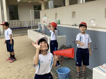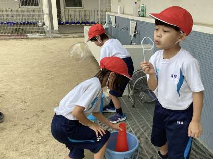しゃぼんだま遊びをしました。