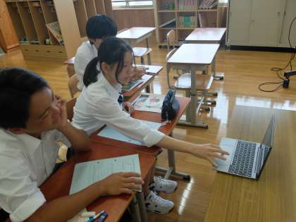 学習を見ていて9年生の交流への意欲の高さをとても感じました。「自分の言葉で英語でコミュニケーションをとりたい。」という気持ちが伝わってきて見ていてうれしくなりました。そして、オーストラリアの中学生が話す日本語に対しての温かい受け答えもとてもステキでした。