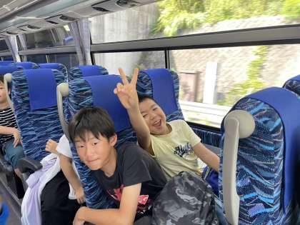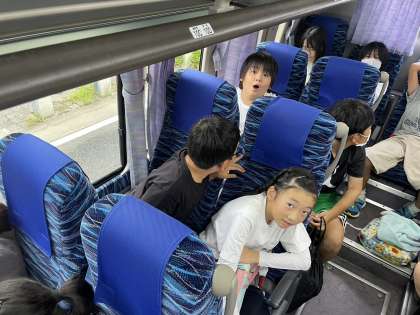バスはまもなく海洋高校に着きます。「海や〜」と歓声がわきました。