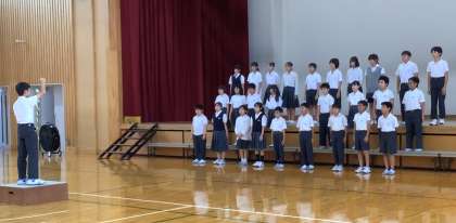 学年で集まって体育館で練習をしました。お互いのクラスの合唱を聴くのははじめてです。緊張していたようでしたが、とてもよい表情で歌っていまいた。本番が楽しみです!